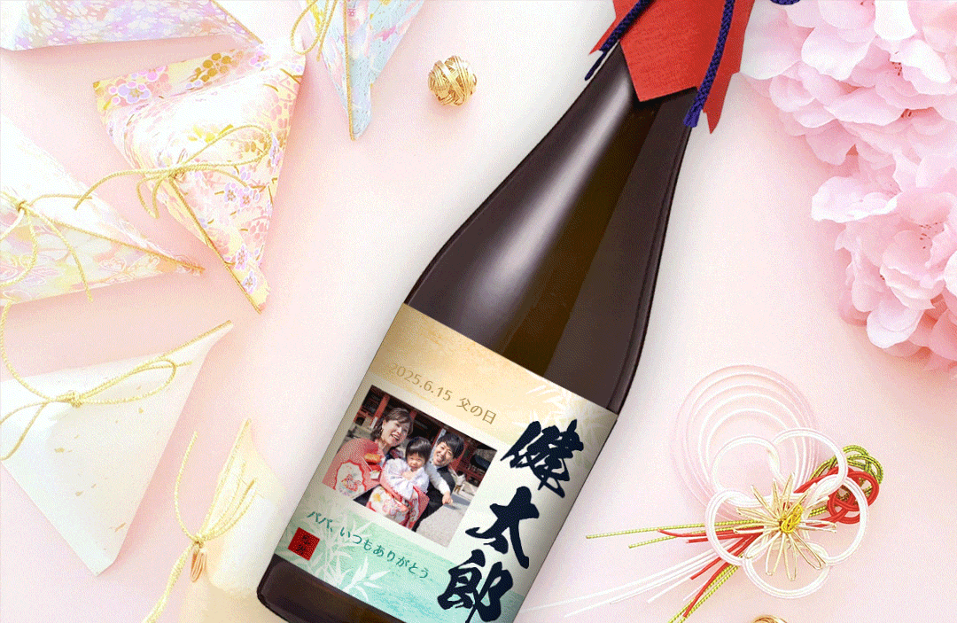 名入れ酒はお気に入りの写真やスタンプ、メッセージなどを取り組んだ"世界にひとつだけのオリジナルの名入れ酒"をお届けするサービスです。